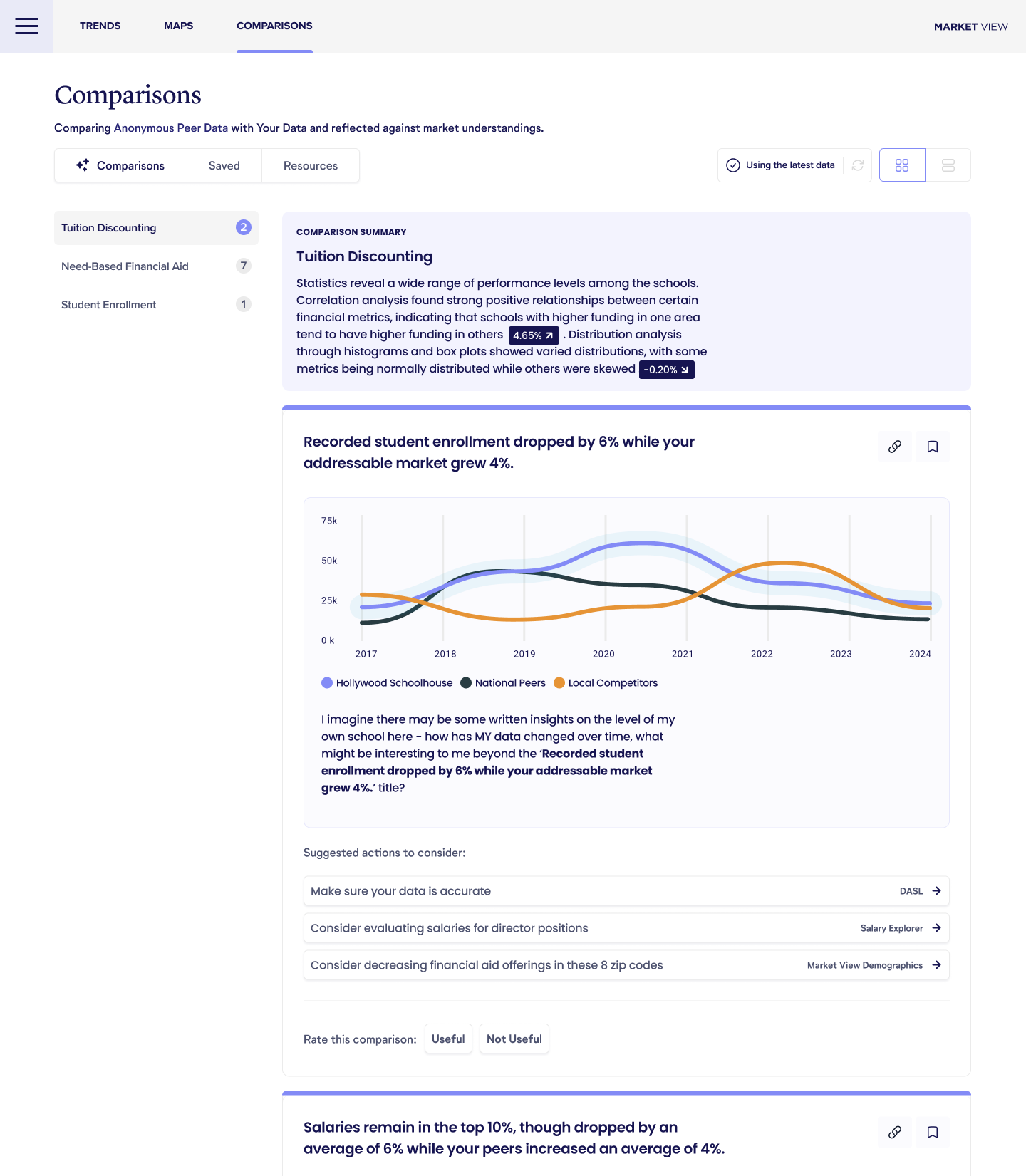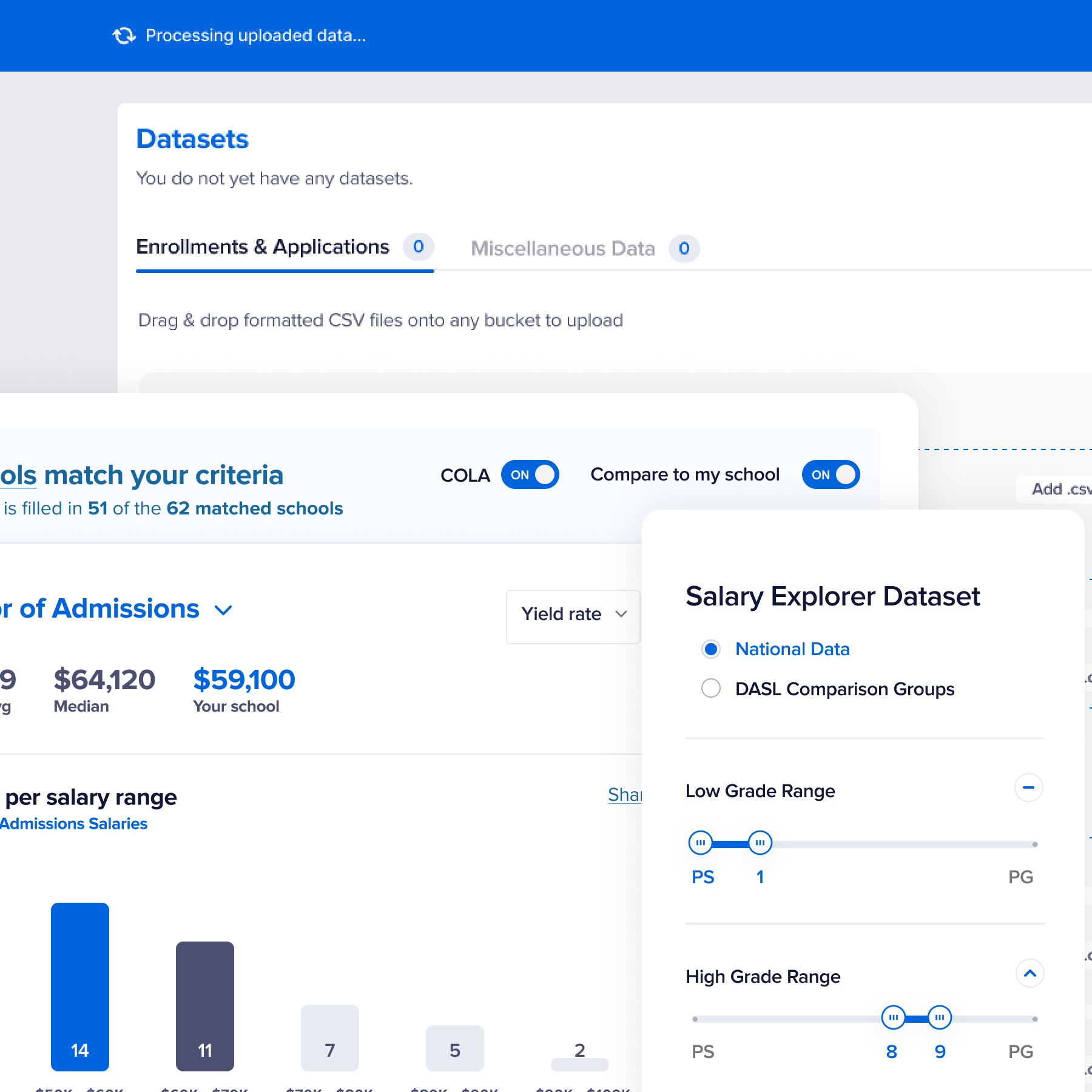 I directed and designed the full analytics suite granting educators comprehensive views into market demographics, school operations, and enrollment intelligence. The National Association of Independent Schools provides many benefits to their member organizations, with this tool the flagship of them →